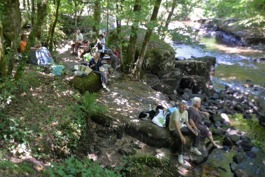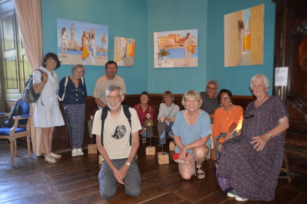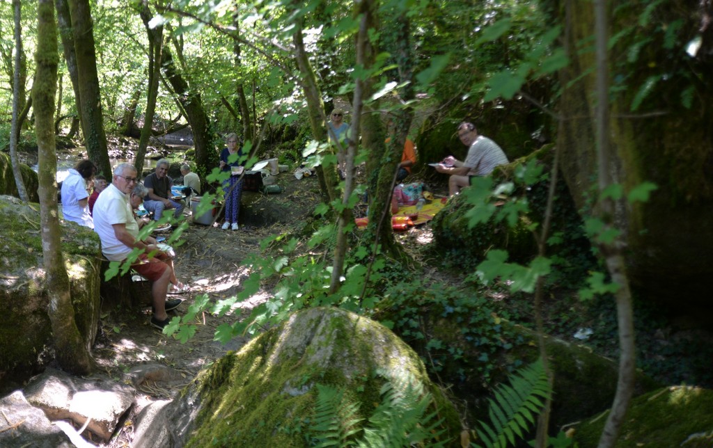 Le dimanche 29 juin nous avons fait une sortie sur le site Corot à Saint-Junien malgré la chaleur ! Heureusement le site ombragé, au bord de la Glane, nous a permis une promenade agréable avec son paysage remarquable. Nous avons pique-niqué au bord de l’eau et aussi mis les pieds dans l’eau! Nous sommes ensuite allés visiter l’exposition internationale d’art contemporain au Château de Saint-Auvent. L’accueil était très chaleureux et Madame Annick Debien nous a fait l’honneur de commenter cette exposition en personne. Nous avons posé devant les tableaux de notre ami peintre Yorgos Tzeyianakis qui expose 4 très beaux tableaux. Cette journée était très agréable malgré les 35°C !